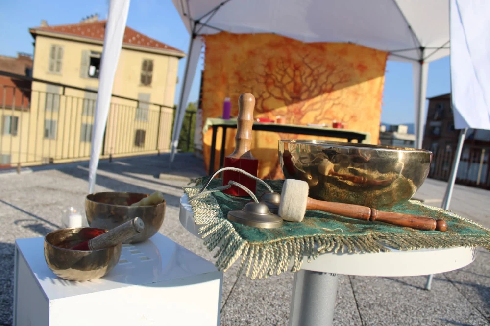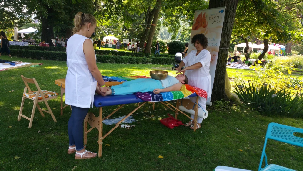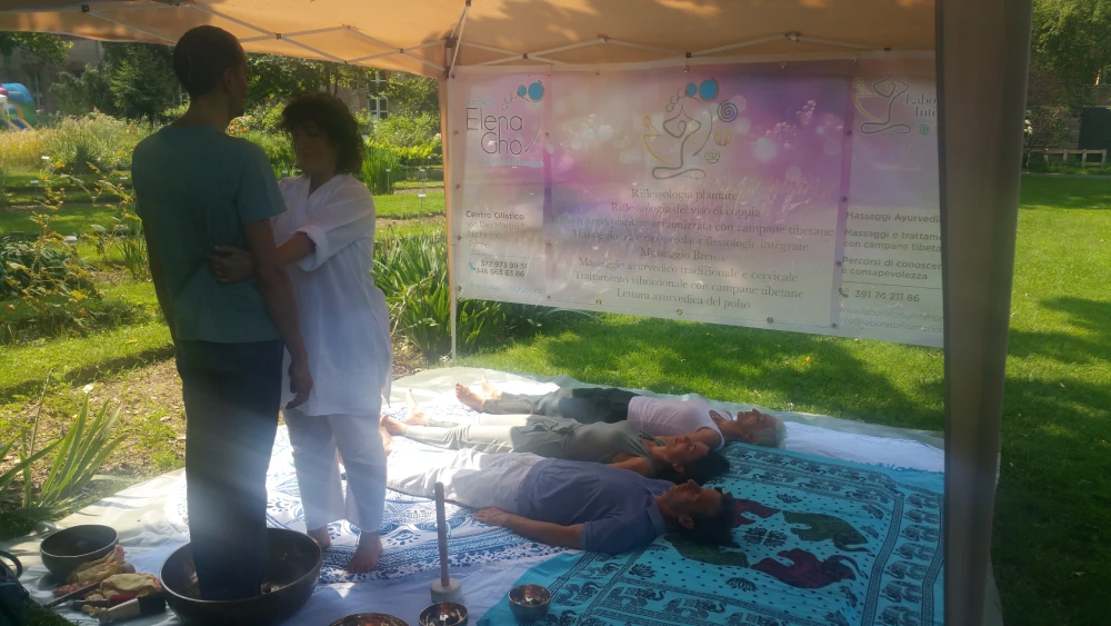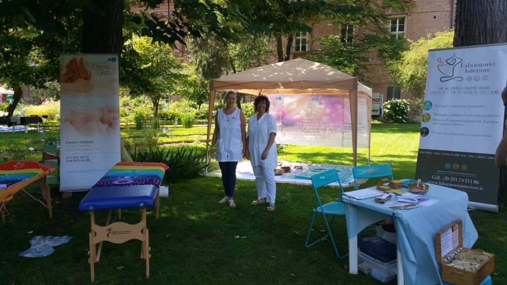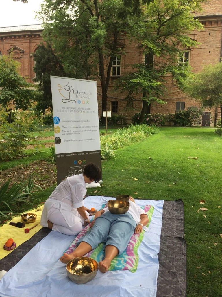In occasione di due Festival delle discipline olistiche e del benessere tenutisi presso l’Orto Botanico di Torino, il Laboratorio Interiore del Benessere ha partecipato offrendo l’opportunità di vivere l’esperienza di trattamenti con discipline integrate, massaggi ayurvedici e con le campane tibetane immersi in un magnifico scenario a contatto con la natura. In tale occasione, in collaborazione con la dott.ssa Elena Gho, riflessologa plantare e cosmetologa, è stato anche proposto il trattamento combinato a quattro mani di riflessologia plantare e riflessologia del viso, e il trattamento di riflessologia plantare armonizzata con le campane tibetane.