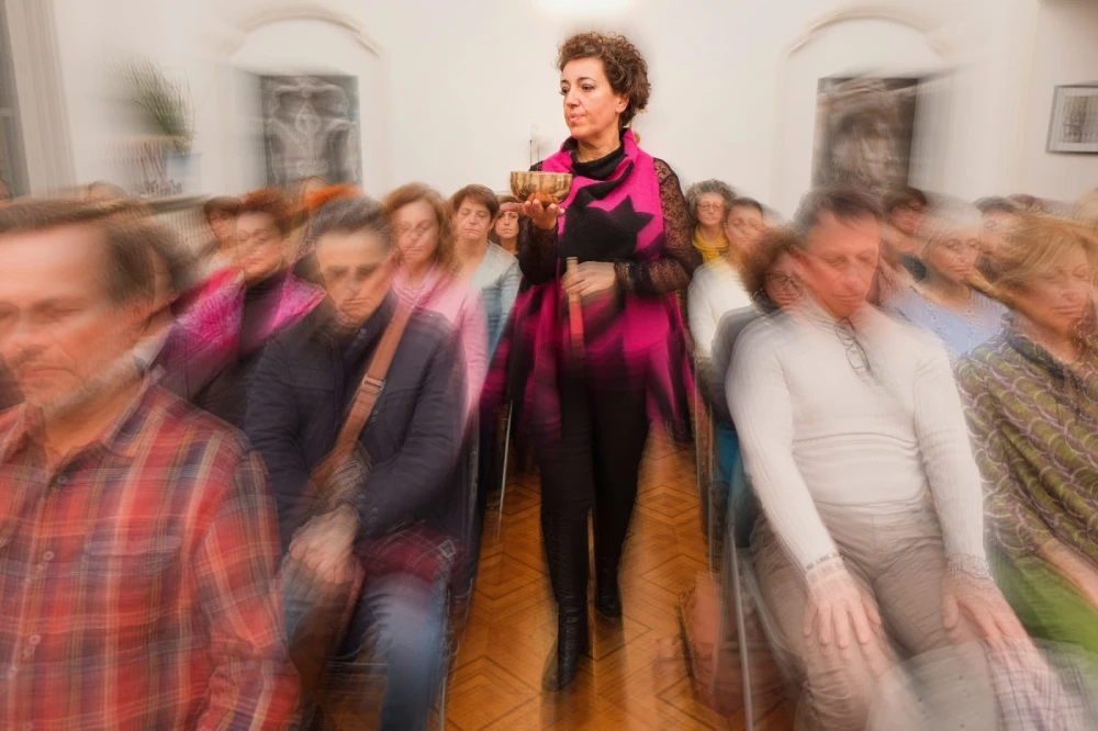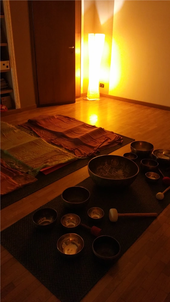 Qui sono raccolte le immagini di alcuni degli incontri di rilassamento con le campane tibetane, incentrati sull’attenzione al respiro e sull’ascolto interiore: un viaggio emozionante nella parte più profonda di sé. Il respiro si fa ascolto e si percorrono le vie che da rumore della mente giungono nel silenzio interiore ove il suono e la vibrazione delle campane tibetane si diffondono, inducendo un autentico, sconfinato stato di rilassamento e benessere. Le vibrazioni dei suoni armonici si espandono nel corpo, favorendo un rilascio naturale delle tensioni e un ritrovato senso di equilibrio, pace e vitalità. Un’esperienza unica in cui si può riscoprire la calma e la connessione profonda con sé stessi.